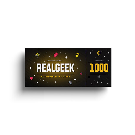 Darujte tento poukaz na 2000 Kč a ten, kdo ho získá, si sám bude moci vybrat za které tričko, náramky, plakáty, nebo třeba mikinu, ho promění. Poukaz se dá využít na jakýkoliv sortiment z e-shopu RealGeek.cz a je možné ho využít na několik produktů najednou. Platí po dobu 90 dní od zakoupení.